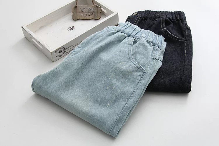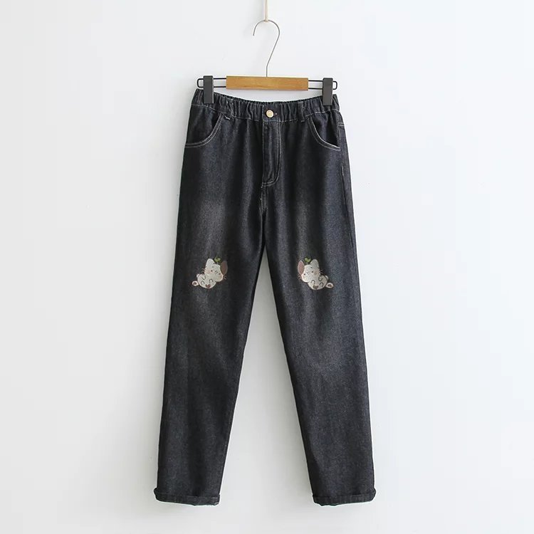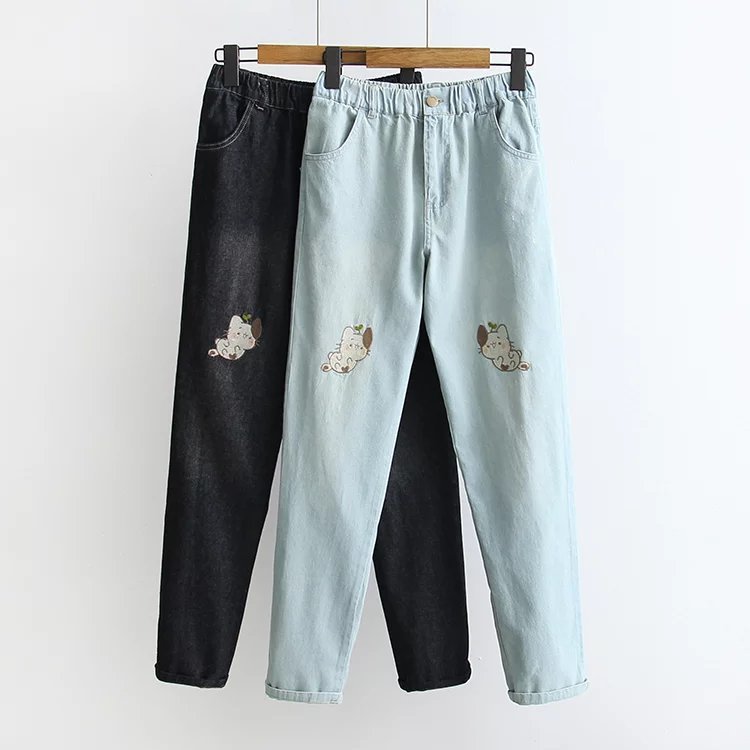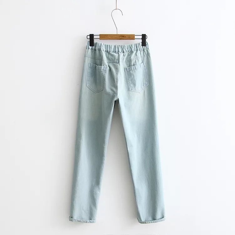 免運 ZH9227 2017春款牛仔褲女百搭刺繡松緊腰褲子寬松休閑牛仔褲女 OPP