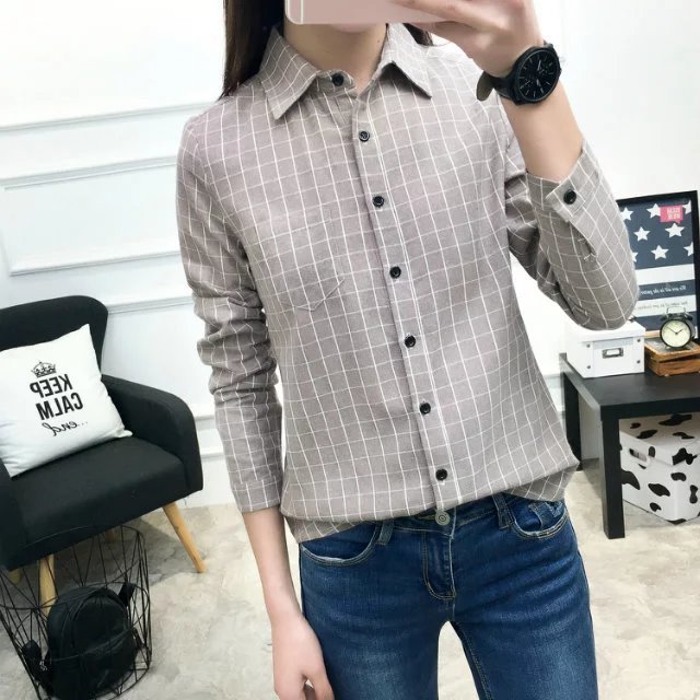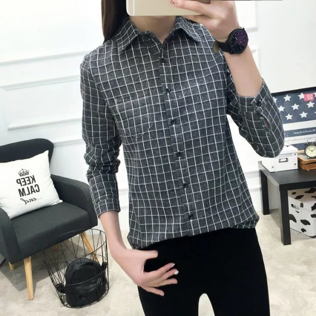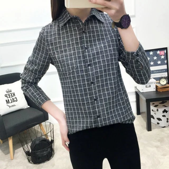 我終於找到了免運 S9099 海2017春新款純棉格子襯衫女長袖顯瘦百搭修身學生女襯衣潮 OPP!