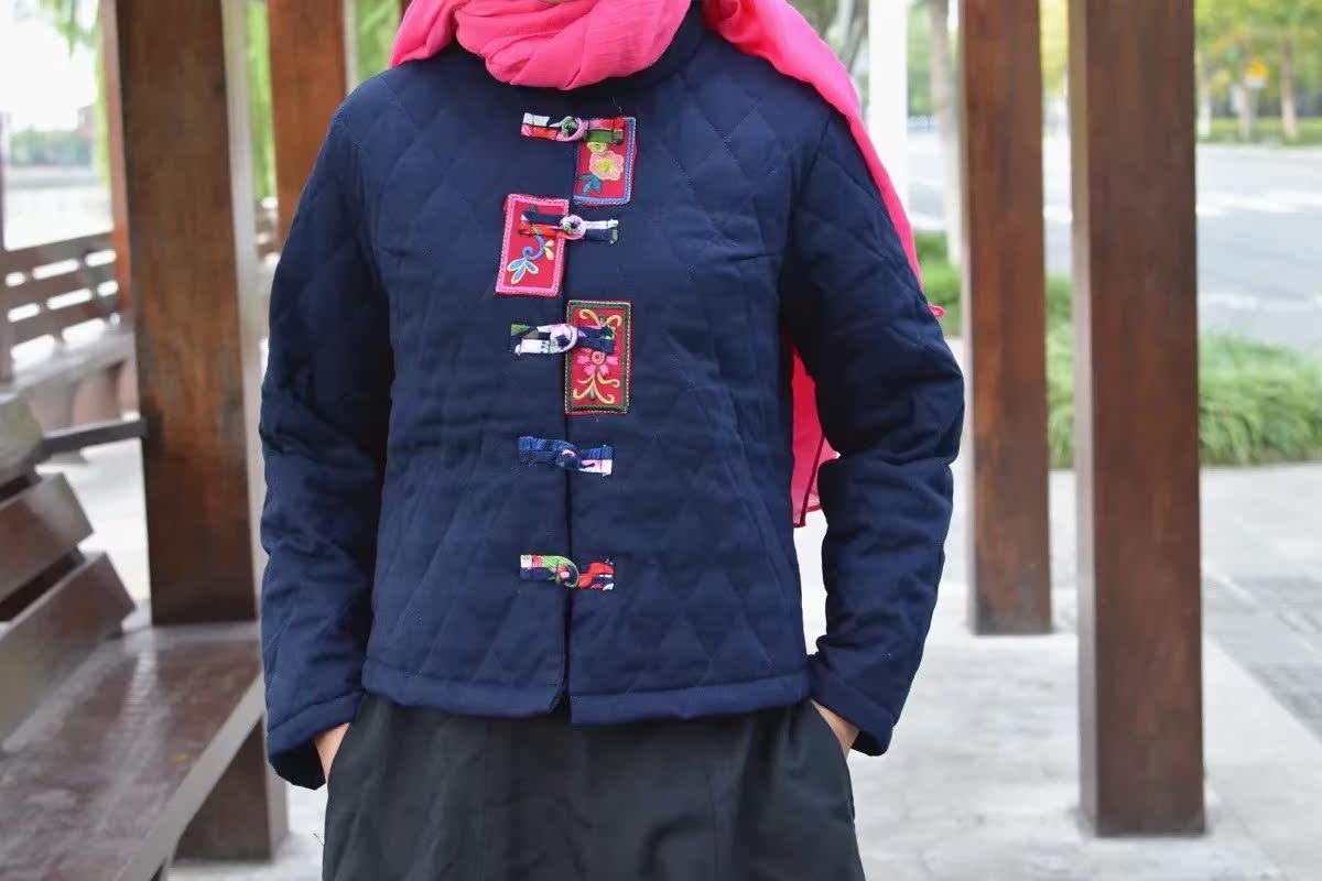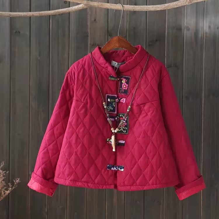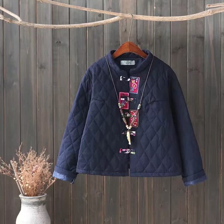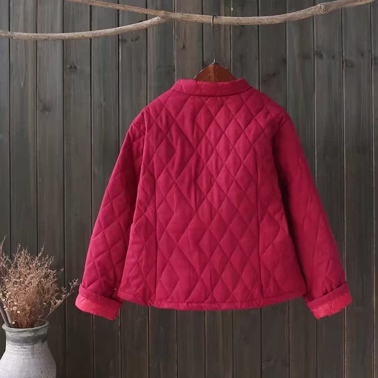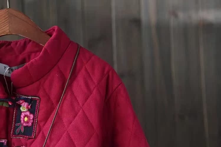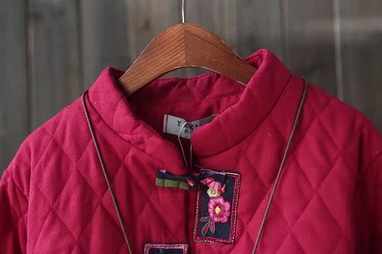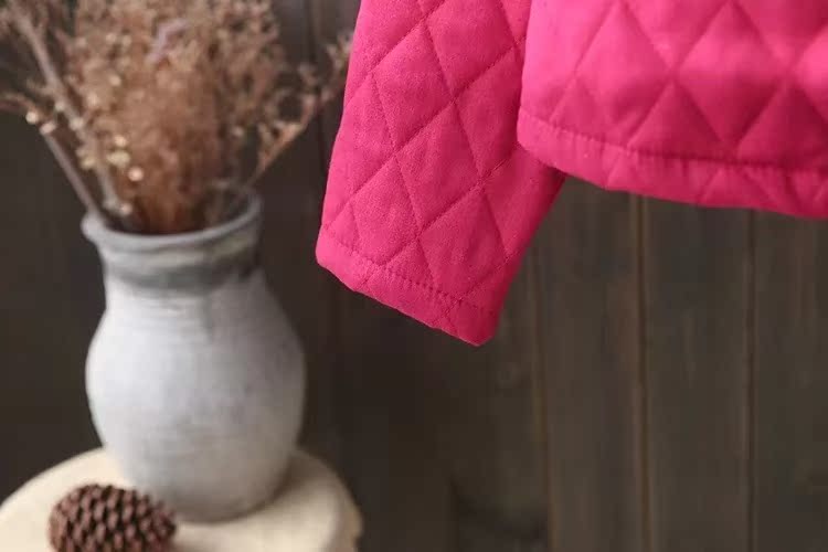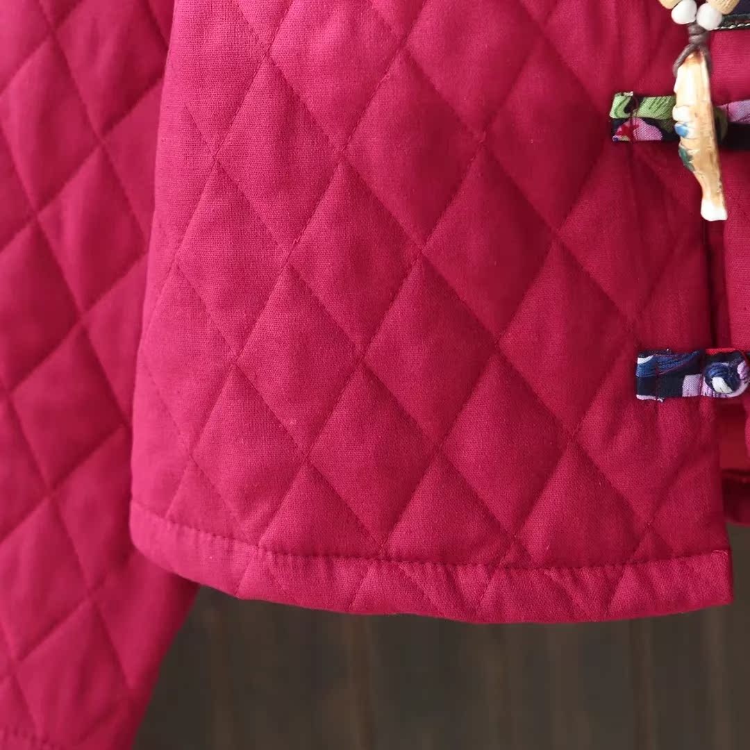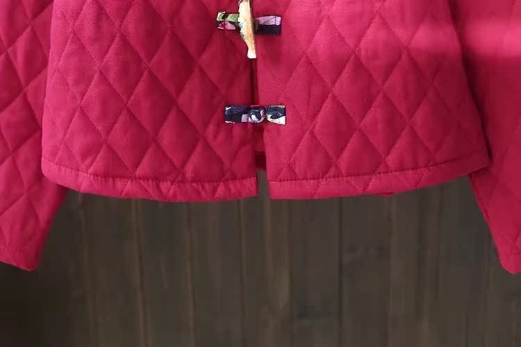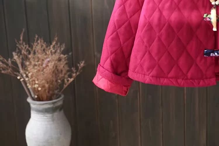 冬季原創中國風文藝范 復古盤扣貼布格紋棉麻夾棉女士棉衣S3868吧!