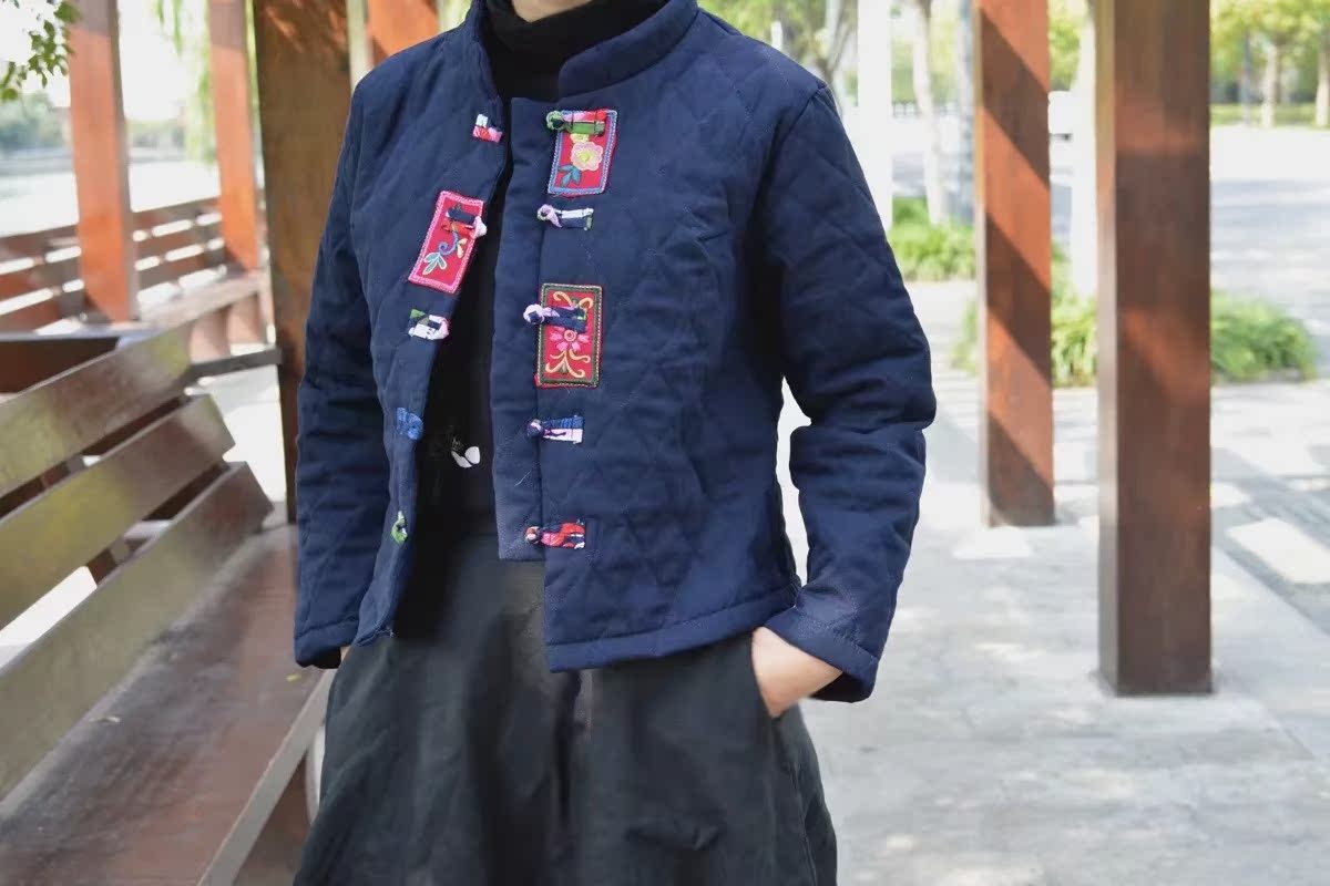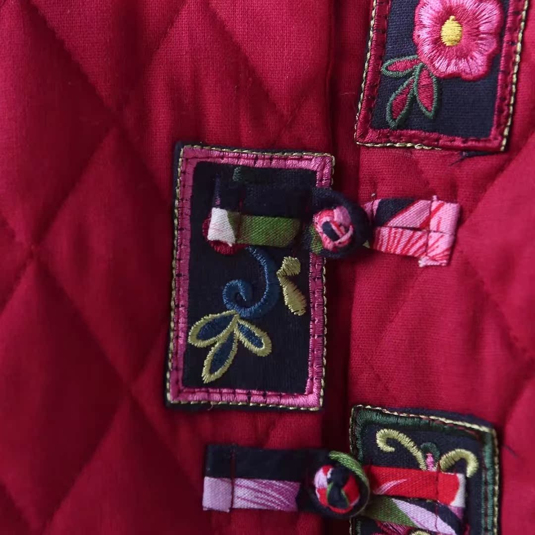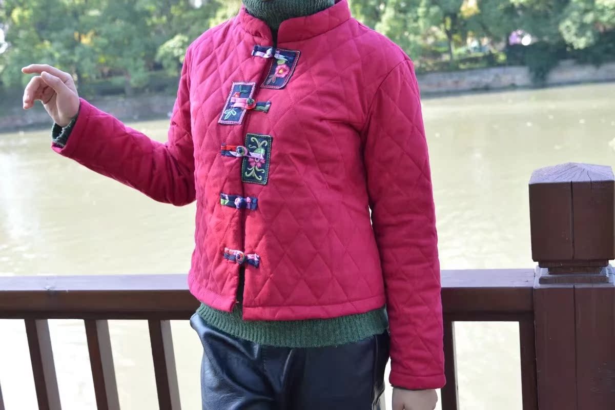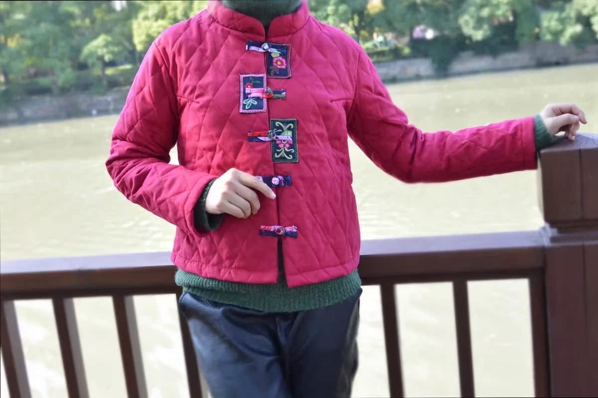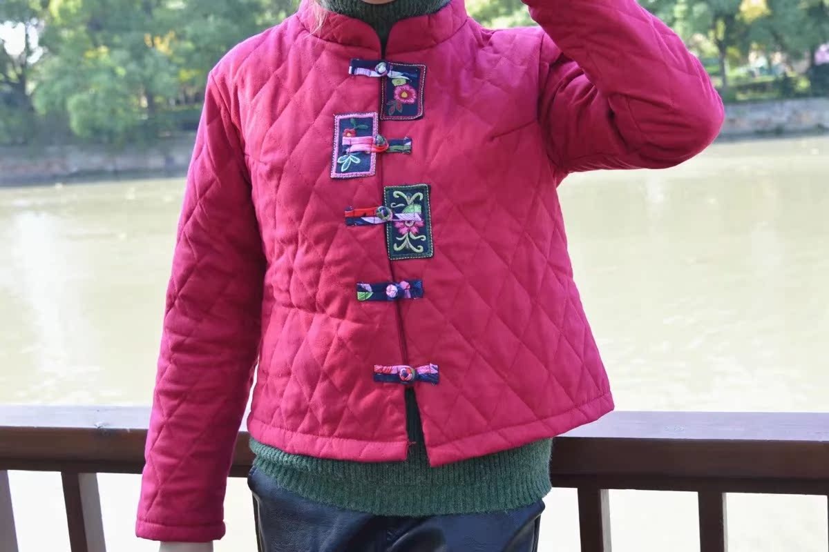 冬季原創中國風文藝范 復古盤扣貼布格紋棉麻夾棉女士棉衣S3868吧!