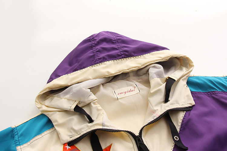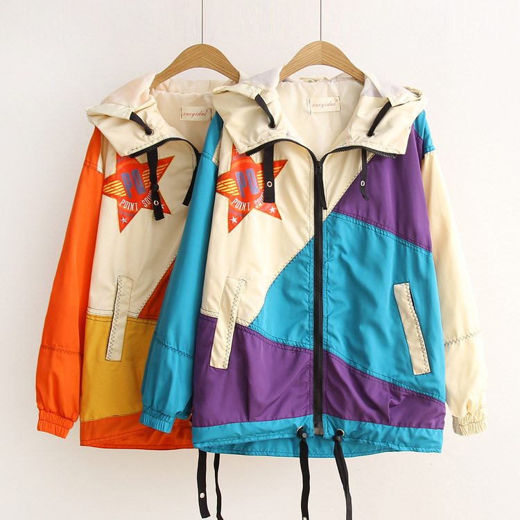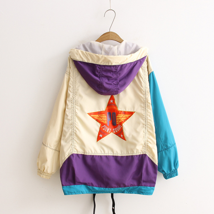 飛行夾克 alpha>春秋新款女裝拼色五角星休閑運動外套寬松顯瘦連帽開衫HH6592