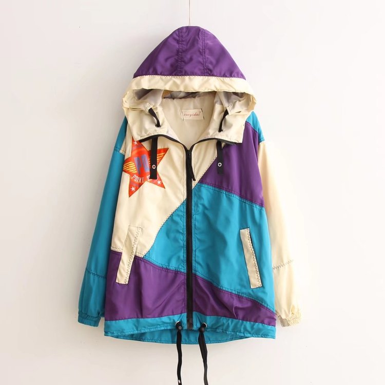 春秋新款女裝拼色五角星休閑運動外套寬松顯瘦連帽開衫HH6592吧!